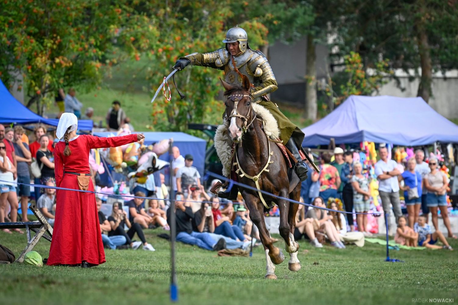 - Turnieje rycerskie: pieszy o "Miecz Pani Wójt", konny - kruszenie kopii,