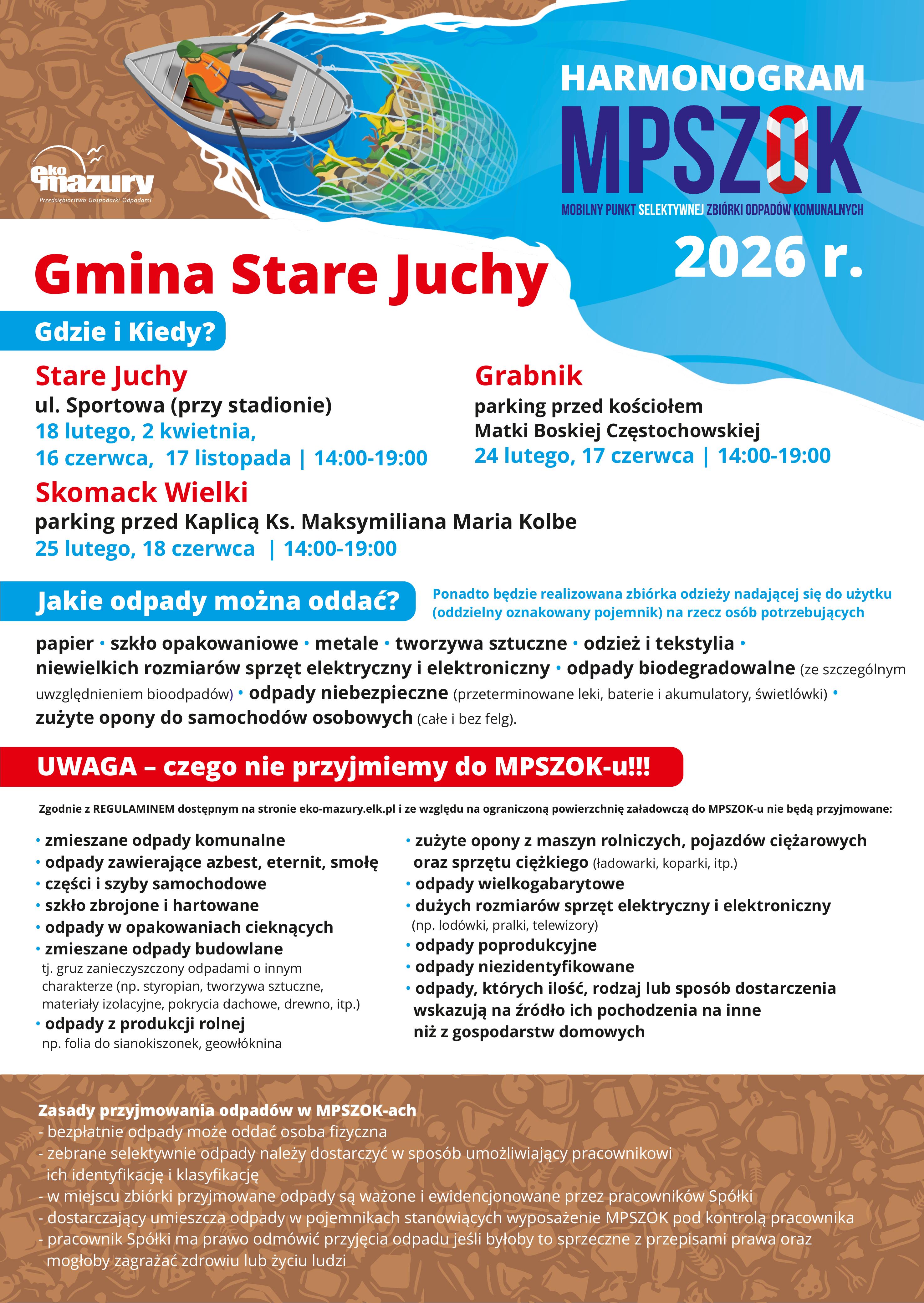 | Stare Juchy ul. Sportowa (przy stadionie) | 02.04.2026 | 14.00 - 19.00 |